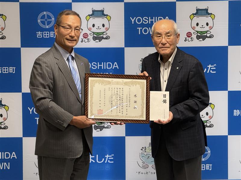 台風15号による災害義援金として、榛原郡吉田町へ、企業版ふるさと納税を利用して寄付をいたしました。